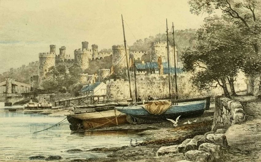 HOWARD MITCHELL limited edition colour print (5/500) - Capel Twrgwyn, signed, titled and numbered in pen, 19 x 27cms, a pair of coloured etchings, monogrammed 'HGW' - Conwy Castle and boats ashore, 17 x 27.5cms