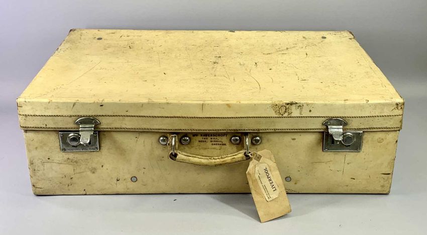 FINNIGANS OF LONDON VINTAGE PIG SKIN SUITCASE - with chrome fittings stamped 'Mrs Ravenscroft, The Hill Ness, Wirral, Cheshire', 22 x 76 x 46cms
