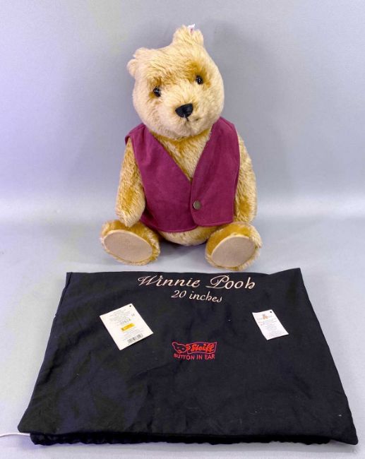 STEIFF 'WINNIE THE POOH' - limited edition (2614/3500), wearing maroon waistcoat, 51cms tall, with bag