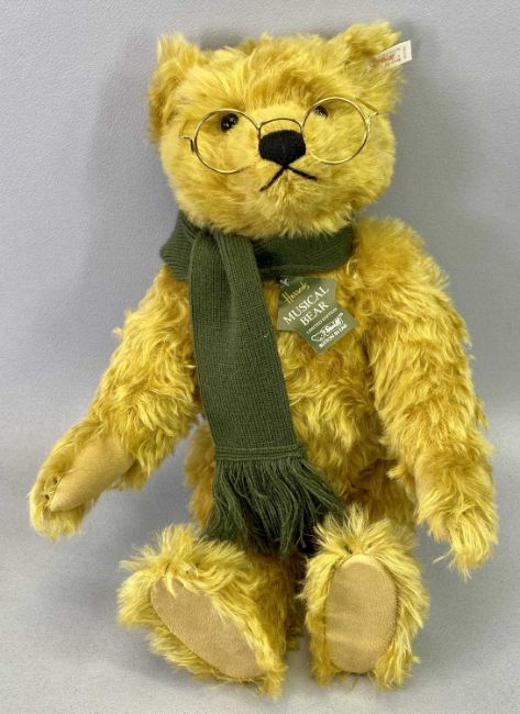 STEIFF HARRODS 'COLLEGE' BEAR - limited edition (1542/2000), wearing glasses and a scarf, with musical winding mechanism to the back, 42cms tall