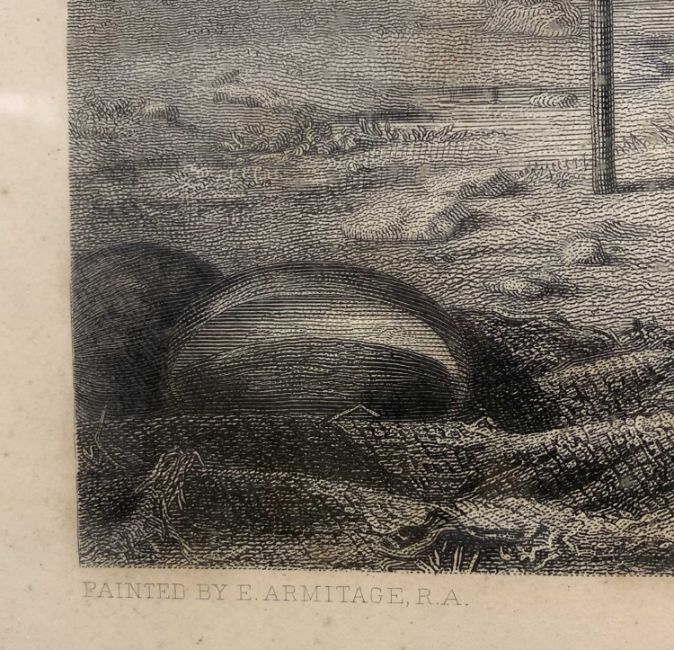 BIBLICAL ANTIQUE ENGRAVINGS & PRINTS (3) - to include C H JEENS engraving titled 'Joseph and Mary' after original by E Armitage RA, 59 x 77cms, HERBERT SMALZ Victorian print - the resurrection dated 1898, blind stamped and signed by the engraver E Gilbert Hester, titled verso 'Rabboni', 85 x 53.5cms and photochrom published print titled - 'Rheims Cathedral West Front', 58 x 45cms