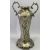 ART NOUVEAU PEWTER TWO-HANDLED VASE - of elongated shaped cylindrical design embossed with stylised flowers and trailing stems, 43.5cms H, rectangular brass trivet with pierced top and turned legs stamped 'W T & S' registered 607166, 11cms H, 30.5cms W, 14cms D and an Indian copper leaf shaped dish with chased and pierced floral decoration, loop handle capped with leaf, 45.5 x 51cms, brass framed mesh spark and a metal companion set
