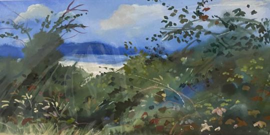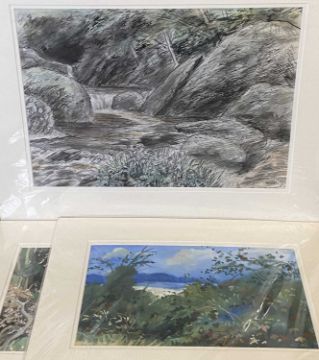 HELEN M STEINTHAL (British 1911 - 1991) pen and watercolour - Afon Dwyfor, monogram lower right, 34 x 47cms, watercolour - Tan y Bwlch, monogram lower right, 23 x 33cms and acrylic on paper - Above Black Rock, 22.5 x 36cms, monogram lower right