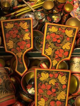 RUSSIAN LACQUERED WARE - 20th century, a large collection of floral decorated boxes, spoons, pots, bowls, ETC (2 boxes)