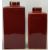 DECORATIVE GRADUATED ROUGE CERAMIC LIDDED VASES (2) - of plain rectangular form, 36cms and 31cms H