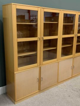 MODERN BOOKCASE CUPBOARDS (5) - single glazed upper door, base cupboard with interior adjustable shelves, 187cms H, 60cms W, 38cms D