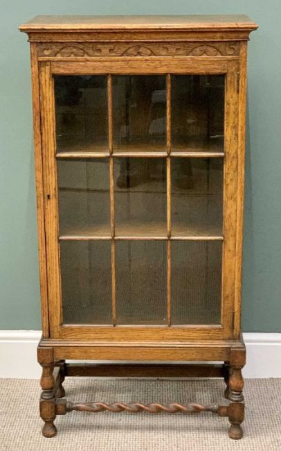 BARLEY TWIST OAK SINGLE DOOR BOOKCASE CUPBOARD - 119cms H, 59cms W, 30cms D