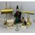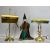 REPRODUCTION BRASS DESK LAMP with adjustable height, 50cms H, a similar student's type desk lamp, 32cms H, Masons Mandalay red mantel clock, 20cms H, stained glass witch candleholder, 45cms H, a Dewars white label advertising figure, 24cms H and a metal framed magnifying glass with Art Nouveau style figural handle, 18cms L