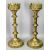 GOTHIC GILDED BRASS ECCLESIASTICAL PRICKET CANDLESTICKS - late 19th century with castellated drip trays, engraved stems and on circular bases with applied rosettes, 46cms H and another gilded brass pricket candlestick with tapered stem and circular base, 63cms H