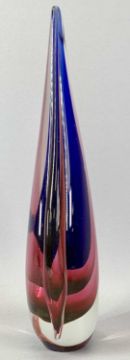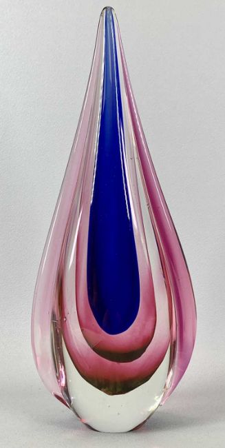 A MURANO 'SOMMERSO' GLASS TEARDROP - in clear blue and pink, 32cms H