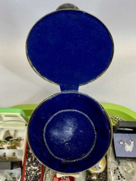 SILVER TONE & OTHER JEWELLERY & COLLECTABLES GROUP - to include an attractive sterling stamped and enamel Art Nouveau type pendant on 18ct white gold plated necklace, other 925 stamped items, large quantity of white metal dress rings, various necklaces, bracelets etc with an embossed white metal trinket box, white metal lady's purse and other interesting items