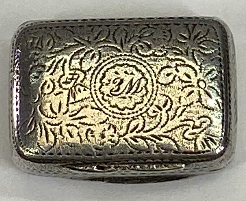 WILLIAM IV SILVER VINAIGRETTE - Birmingham 1833, Maker's mark 'T S', possibly Thomas Simpson Junior, chase decorated exterior with hinged pierced interior grill, 2.1cms across, 0.3ozt, 9.8grms