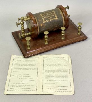 F PARKS MEDICAL ELECTRICIAN DERBY - a medical electricity generator for the relief and cure of sundry ailments, on mahogany stand with gilded brass fittings, 13 x 27 x 16.5cms