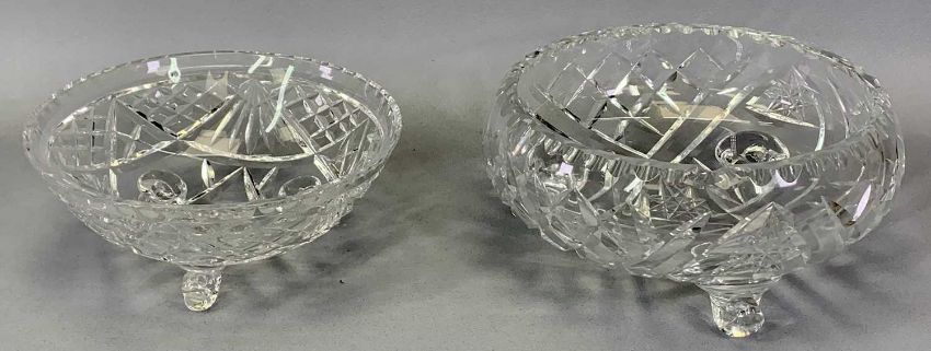 CUT GLASSWARE COLLECTION - including six Brierley Crystal sundae dishes, circular decanter with stopper, 31cms H, another circular cut glass decanter with stopper, 19cms H, two circular cut glass fruit bowls, ETC