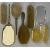 ART DECO DESIGN SILVER, SILVER & ENAMEL DRESSING TABLE, MIRROR & BRUSH SETS (2) with a further two guilloche enamel and silver brushes, the sets each comprising of a hand mirror and two brushes in matching shapes, one set being just silver with lined and foliate decoration, having monogrammed cartouches, the other set in green guilloche enamel, having engine turned and floriate decoration, Birmingham 1962 and 1935 respectively, Maker Charles S Green & Co Ltd, both sets, the final two brushes London 1926, Maker Charles & Richard Comyns