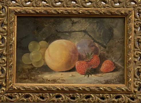 JAMES POULTON (British active 1844 - 1859) gouache, pair - still life with fruit, signed lower right, 14.5 x 23cms