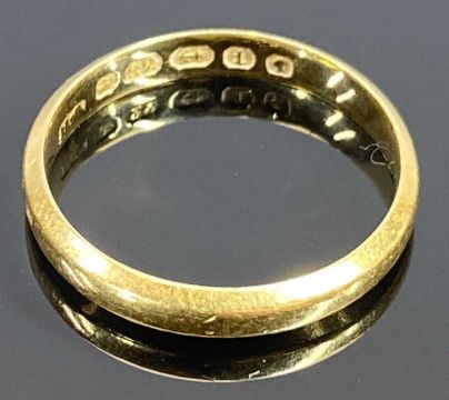 VICTORIAN 22CT GOLD WEDDING BAND - Birmingham date letter for 1885, slightly over Size N, 3.3grms
