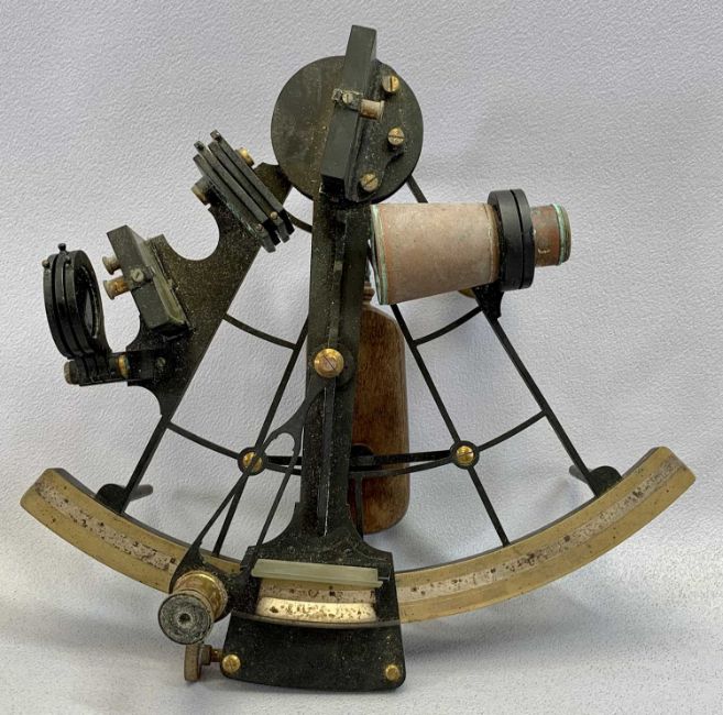 HOWSON & CO MONTREAL P409 SEXTANT - body with black finish and wooden handle, brass and silvered vernier scale, in oak box with three lenses, certificate of examination from The Hezznith Instrument Works