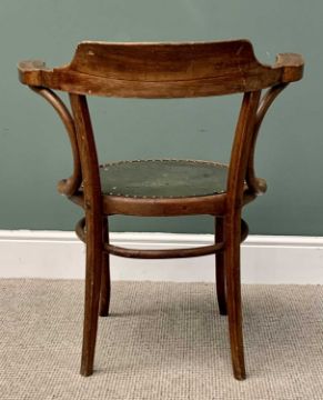 OFFERED WITH LOT 48 - TWO CHAIRS - vintage bentwood armchair with circular seat and an oak farmhouse chair
