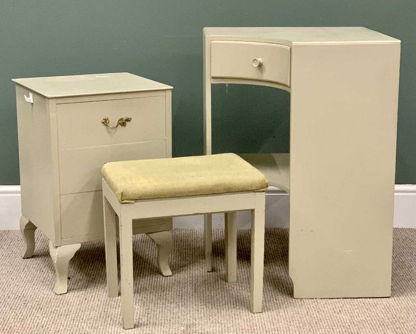 OFFERED WITH LOT 31 - BEDROOM FURNITURE (3) - painted items to include corner dressing table, 77cms H, 54cms W, 54cms D, narrow chest of three drawers, 62cms H, 40cms W, 40cms D and a dressing stool, 41cms H, 43cms W, 32cms D