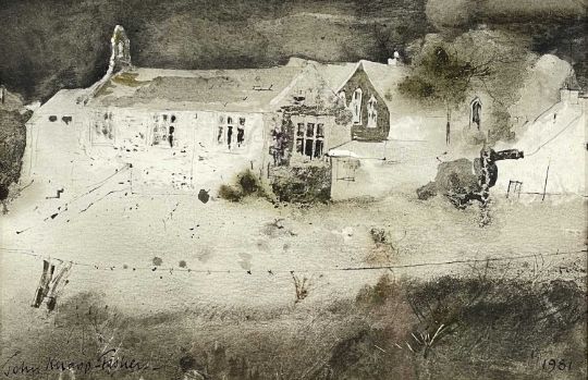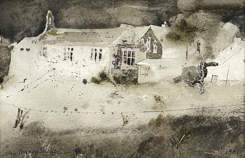 JOHN KNAPP-FISHER watercolour - west Wales church, signed and dated 1981