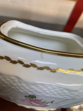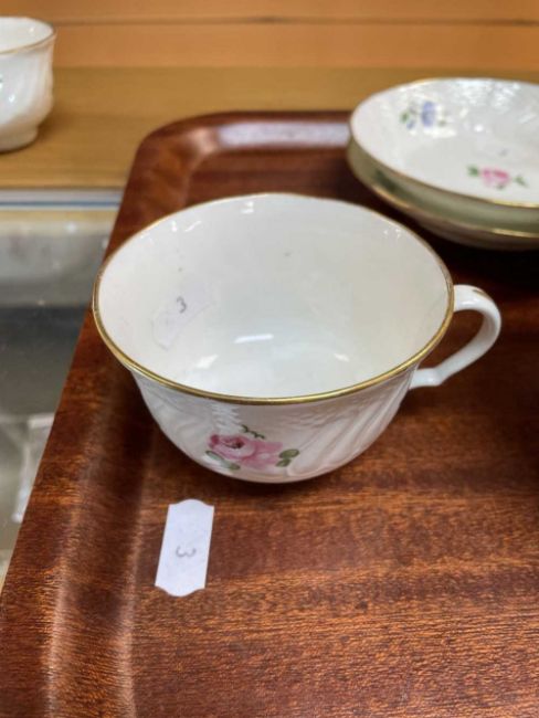 hairline to cream jug, hairline to cups, minor chip to cover and repair to other cover