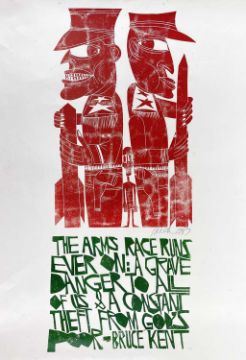 PAUL PETER PIECH two colour lithograph - with quote from Bruce Kent, Catholic priest, political activist and campaigner for nuclear disarmament, signed and dated 1987