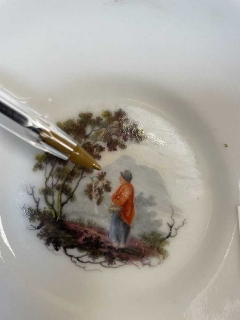 Saucer painting scratched.