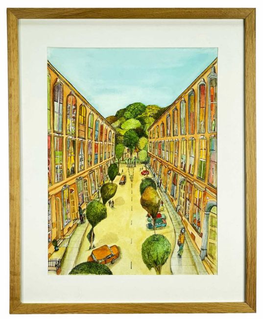 ADRIAN GREEN (Welsh, b. 1967) ink and watercolour - 'Windsor Place', Tinney Gallery label verso, signed and dated 2005, 39 x 29cms