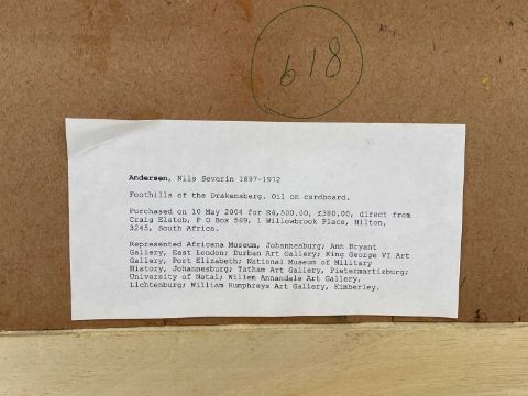 NILS SEVERIN ANDERSEN (South African, 1897-1972) oil on card - 'Foothills of the Drakensberg', signed and titled verso, 35 x 41cms