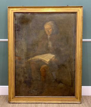 EARLY 19TH CENTURY PROVINCIAL ENGLISH SCHOOL oil on canvas - portrait of a seated gentleman reading from a book, 131 x 96cms
