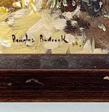 DOUGLAS BADCOCK (New Zealand, 1922-2009) oil on board - entitled verso 'The Remarkables From Frankton, New Zealand', signed, 40 x 50cms