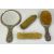 HALLMARKED SILVER DRESSING TABLE HAND MIRROR & BRUSHES GROUP - 4 items to include a circular hand mirror, 28cms L, 16cms diameter, hand brush, 25cms L, both having foliate and scroll embossing with mask detail and two rectangular brushes with embossed bird detail, all pieces non-matching, three with various Birmingham hallmarks, the smaller rectangular brush having Chester hallmarks, various dates and makers