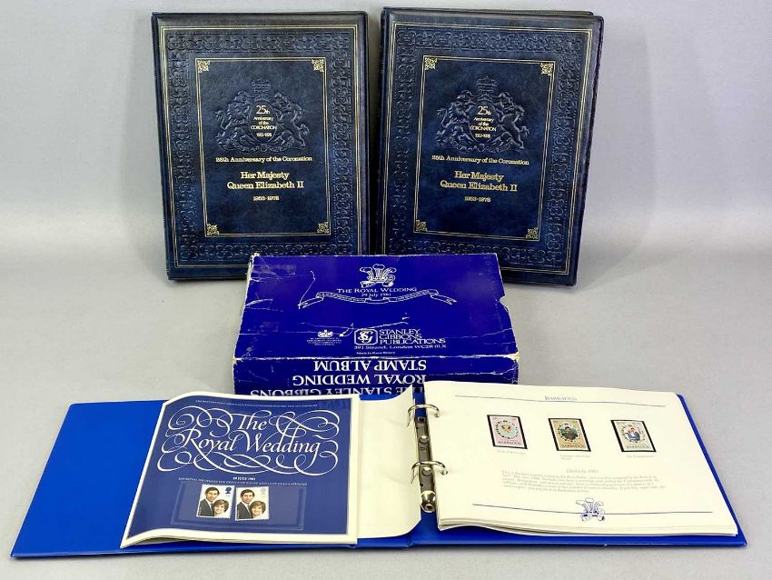 STAMPS - a Lyndhurst stamp album in two volumes, 25th Anniversary of the Coronation of Her Majesty Queen Elizabeth II, Commonwealth and an album of Commonwealth stamps for the Royal Wedding 1981
