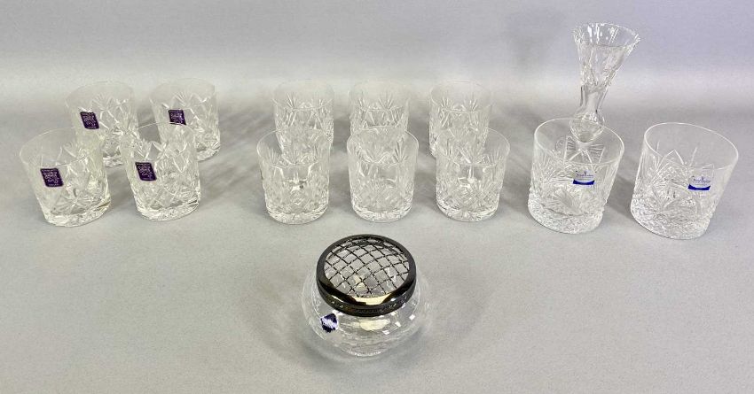 EDINBURGH HAND CUT LEAD CRYSTAL BOXED SET OF 6 TUMBLERS, a boxed pair of tumblers, boxed Posy vase, boxed rose bowl and a pair of boxed Royal Doulton finest crystal tumblers