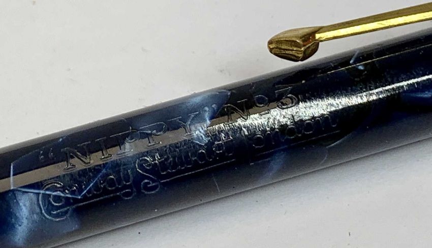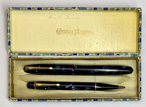 CONWAY STEWART BOXED PEN & PENCIL SET – in blue marble, includes NO 14 fountain pen and Nippy No 3 pen