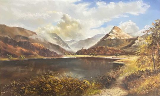 DOROTHEA HYDE oil on canvas - Dolbadarn Castle and surrounding scenery, signed, 50 x 83cms