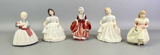 ROYAL DOULTON FIGURINES (5) - 'The Rag Doll' HN2142, 'Flower Girl' HN3602, 'Goody Two Shoes' HN2037, 'Amanda' HN2996 and 'Amanda' (Collector's Club Edition) HN3635, all boxed