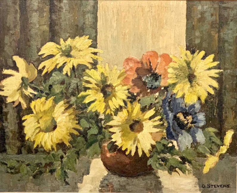 MARYAN HATTON oil on canvas – portrait study of a lady exhibited at The Royal Cambrian Academy 1955, various labels verso including ‘RCA’, original price £45.00, signed lower right, 49.5 x 39.5cms and O STEPHENS oil on board – impressionistic still life, signed lower right, 42 x 51cms