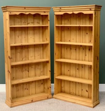 MODERN PINE BOOKCASES - (a pair), 183cms H, 92cms W, 28cms D