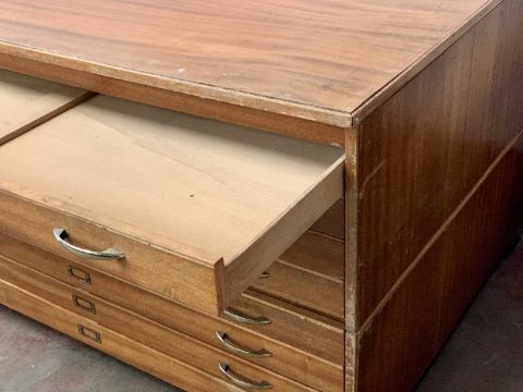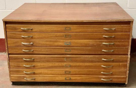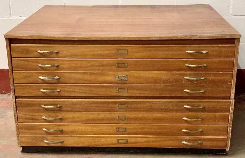 EIGHT DRAWER PLAN CHEST - teak finish, in two sections, 79cms H, 132cms W, 101cms D