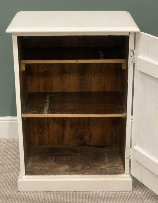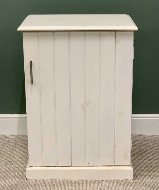 VINTAGE WHITE PAINTED SINGLE DOOR CUPBOARD - with interior shelves, 93cms H, 65cms W, 43cms D