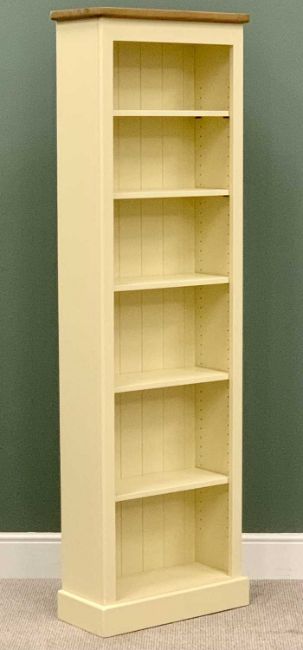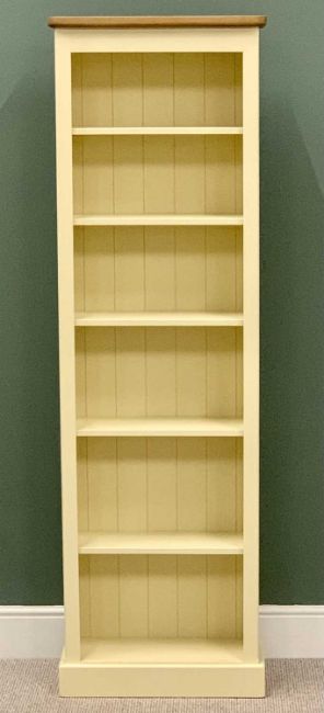 ULTRA MODERN CREAM PAINTED OAK TOP BOOKCASE - with adjustable interior shelves, 197cms H, 61cms W, 27cms D