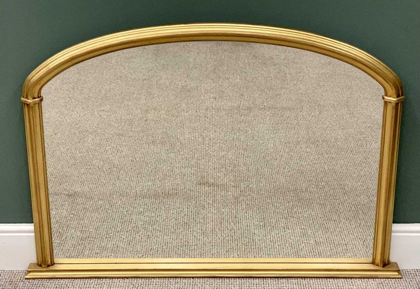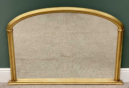 LARGE GILT FRAMED OVERMANTEL MIRROR - having an arched top, 87 x 125cms