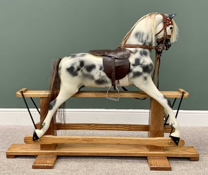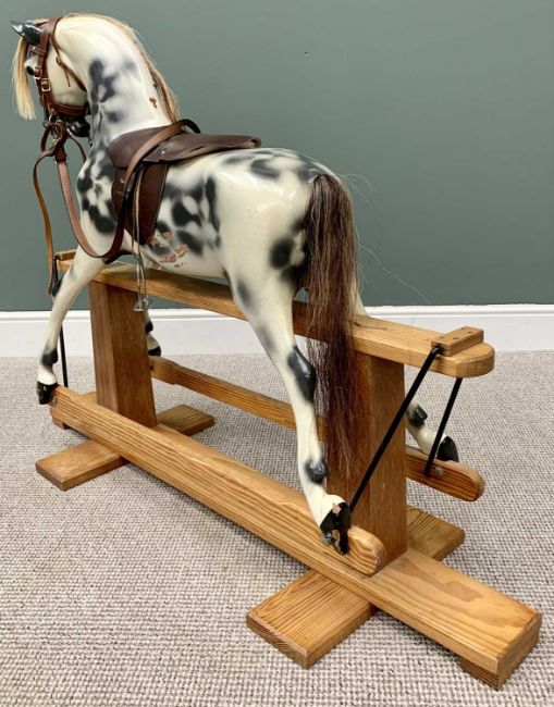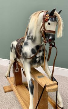 20th CENTURY DAPPLE GREY PEDESTAL ROCKING HORSE - labelled "Haddon Rockers, Makers & Restorers, Wallingford", 105cms H, 137cms L, 45cms W