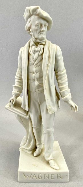 GERMAN PARIAN FIGURE 'WAGNER' - impressed marks, 24cms H and a plaster bust 'Wagner' on pedestal stand, 30cms H