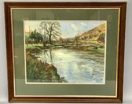 GARETH PARRY (British Born 1951) oil on board - view of river with trees to side, signed lower left, 40 x 50cms