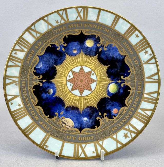 ROYAL WORCESTER LIMITED EDITION LIDDED VASE - (12/200), blush ivory 'Floral Mist', black printed mark, 26cms H and a Royal Worcester 2000 AD commemorative Millennium plate, 21cms diameter