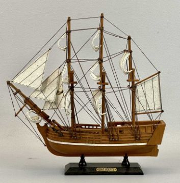 SCALE MODEL PADDLE STEAMER - with twin funnels, the hull painted cream and black, with stand, 39cms H, 56cms L, STEAM LAUNCH - of wooden construction, with stand, 23cms H, 46cms L and SHIP 'HMS Bounty', with stand, 33cms H, 32cms L