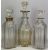 TWO SILVER COLLARED GLASS DECANTERS & ONE OTHER - the tallest having a collar to the upper rim stamped 'Birmingham 1991' Maker Hampton Utilities, 32cms H including stopper, the others appearing as matching bottles with non-matching stoppers, one now having a silver collar stamped 'Birmingham 1996', Maker Laurence R Watson & Co, 26.5cms H this example including stopper, 27cms H the other